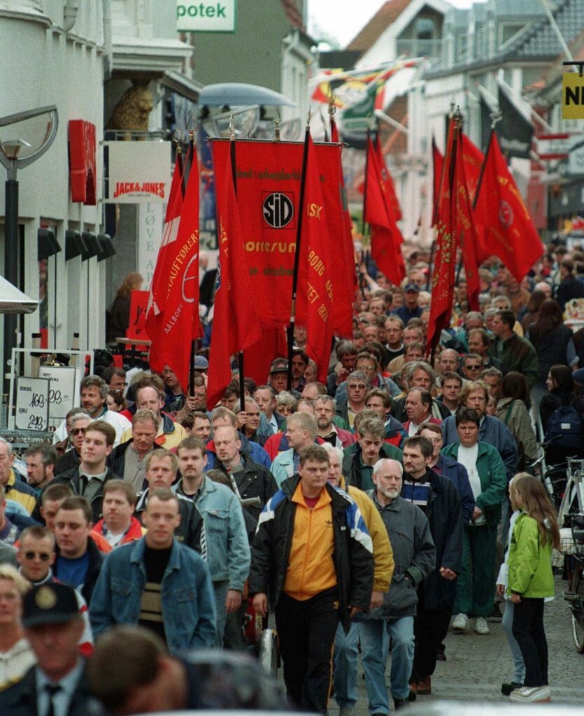 Blokerede virksomheder, strejkende chauffører, butikker uden varer og tusinder af danskere på gaden med røde faner og højlydte paroler.